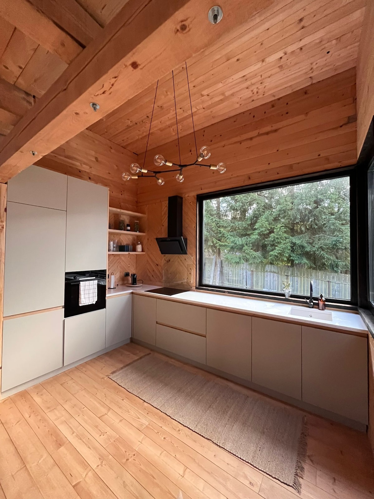 This unique home has its own style. It is cozy, secluded, surrounded by fir trees, 6000 sqm land. The hygienic fiberglass toilet is prepared only upon request. The interior has a unique design with elegant stone and wood finishes. The kitchen is equipped with everything you need, with a dining area. The fireplace completes the fairytale atmosphere. The underfloor heating of the house is with an electric heat pump. Fiber optic WIFI.