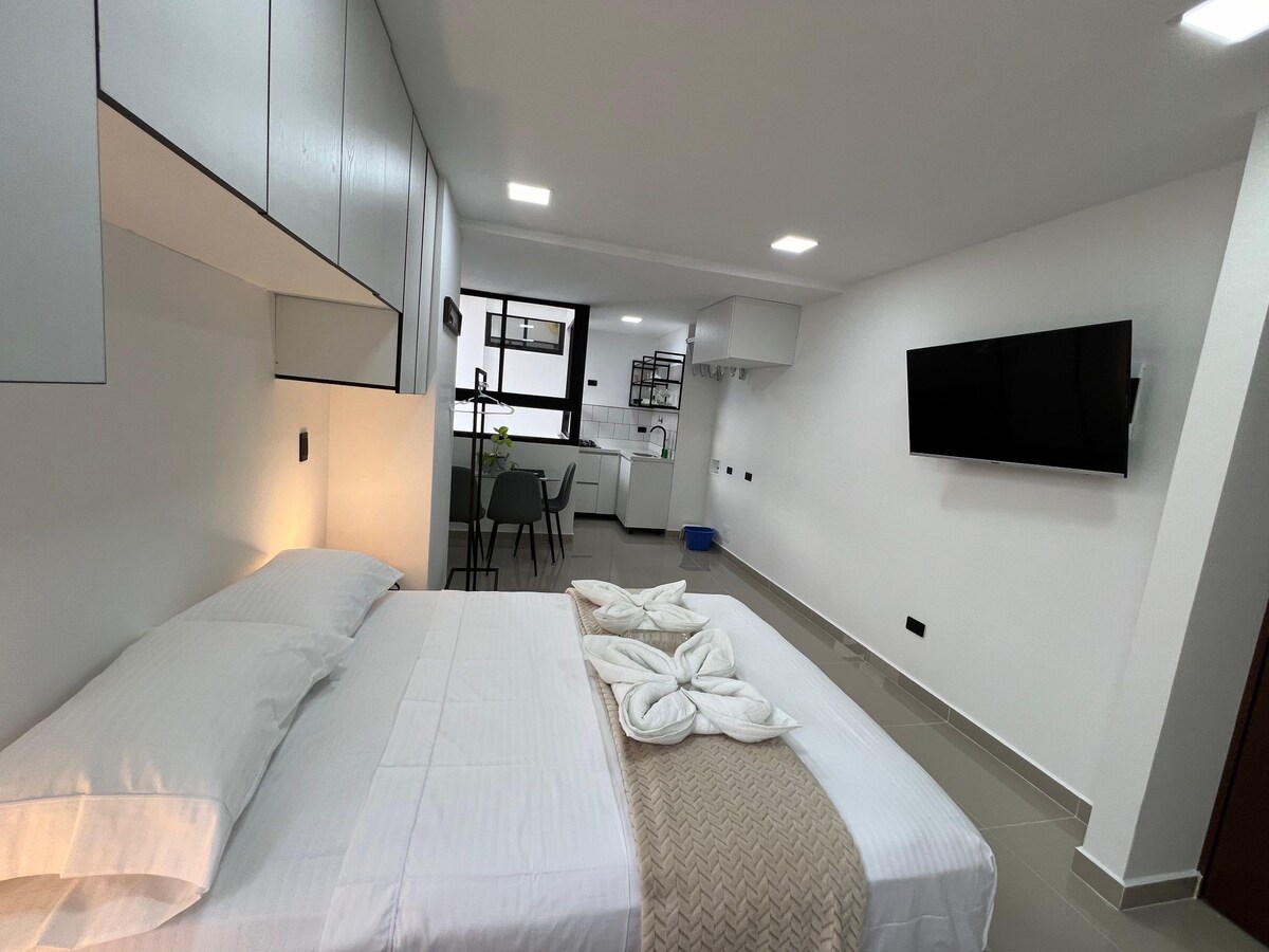 A unique space that makes you feel really comfortable. Equipped with excellent security when entering the building, with an elevator, a very complete kitchen, and an exceptional view of the city and mountains. Master bedroom with Jacuzzi and air conditioning. Located in an excellent area with accessibility to everything around you (Restaurants, pharmacies, church, market shops, boutiques, bakeries, gym, Zona Rosa with bars, nightclubs)