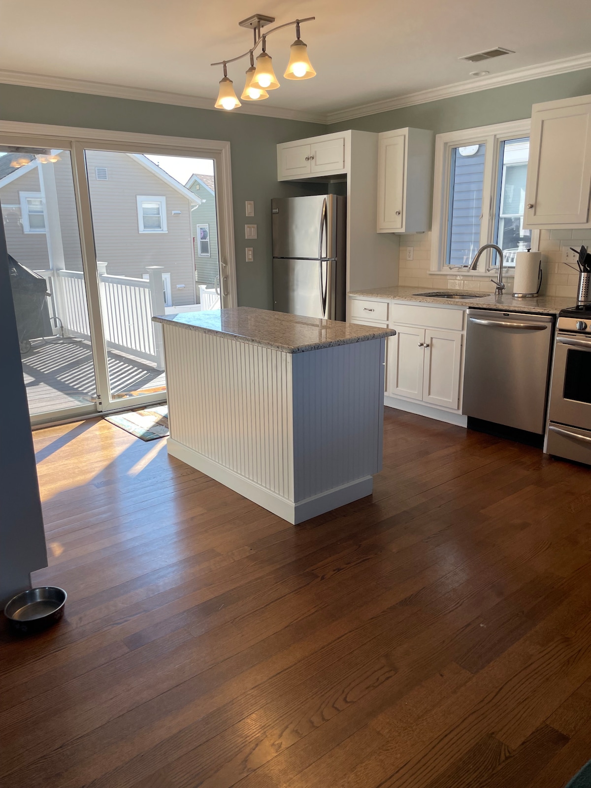 Come enjoy our newly renovated beach house! Sit on the adirondack chairs on the front porch and read a book or BBQ on the back deck. The 1st floor consists of the kitchen, living room, half bath, and laundry. Our large backyard has a grill, outdoor shower, fire pit and plenty of room for fun. The 2nd floor has 3 bedrooms w/balconies and a full bathroom (w/bathtub). We have a long driveway and an easy 10 min walk to the beach. We hope you will enjoy our beach house with a 5-star experience!