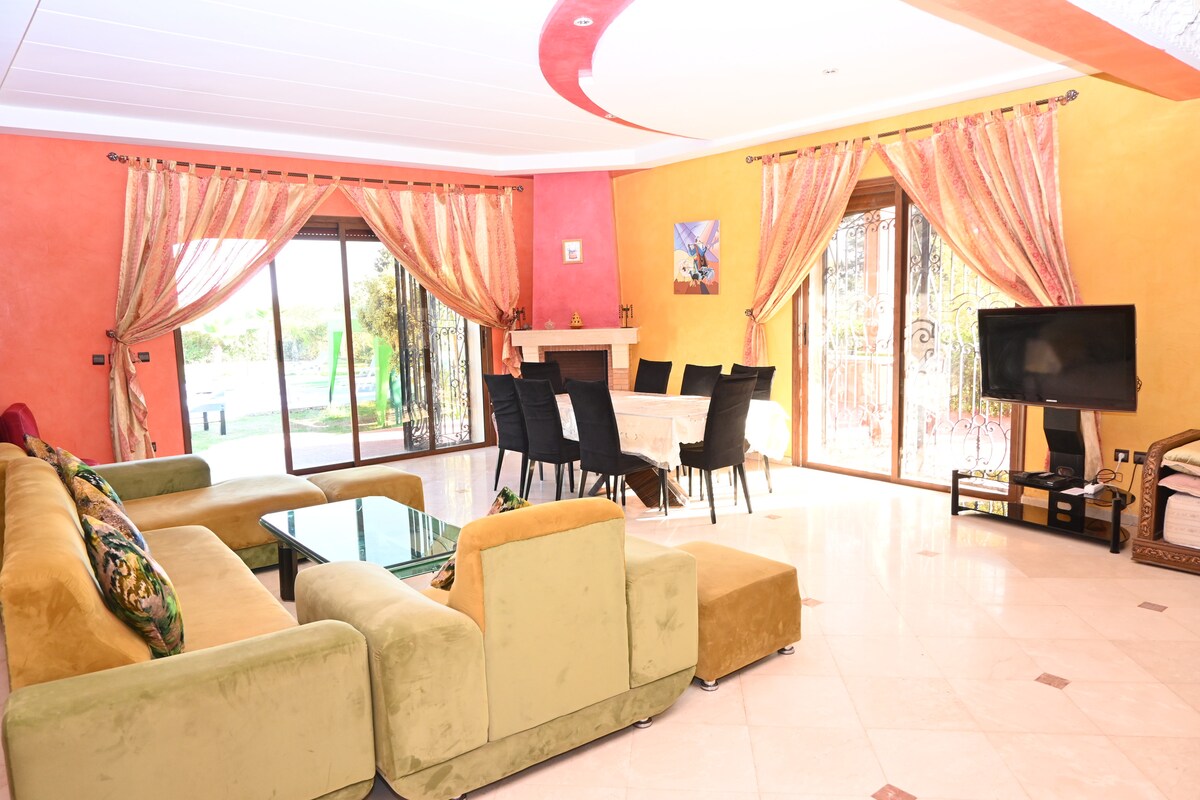 Relax in this comfortable, warm, unique, peaceful and spacious accommodation. Located in the middle of nature ❤️ In the surroundings of the beautiful city of Benslimane, with a large swimming pool (15/7) and a very beautiful garden, a true haven of peace where it is good to live and meet with family or friends! It is a 2-storey villa that has: - 3 air-conditioned bedrooms each with its own bathroom, - fireplace - Well-equipped kitchen - 2 large air-conditioned living rooms and hall