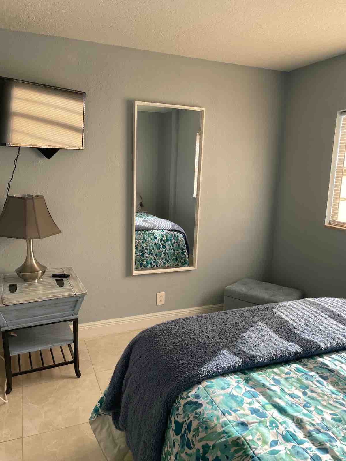 Enjoy a pleasant and comfortable suite with a separate entrance, kitchenette, full bathroom, and toiletries included for your convenience, just a half mile from the highway, near beautiful beaches, and Raymond James Stadium.