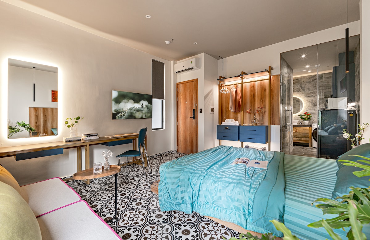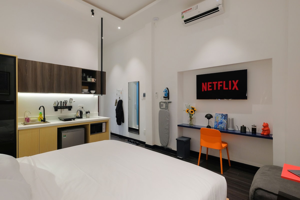 An amazingly designed apartment suitable for exploring Ho Chi Minh city. The apartment is close to bars, restaurants, cafes and a walking distance from Bui Vien street and Ben Thanh Market where you can find a variety of retail shops. We take extra precaution when cleaning the apartments to give our customers a more comfortable and safer stay.