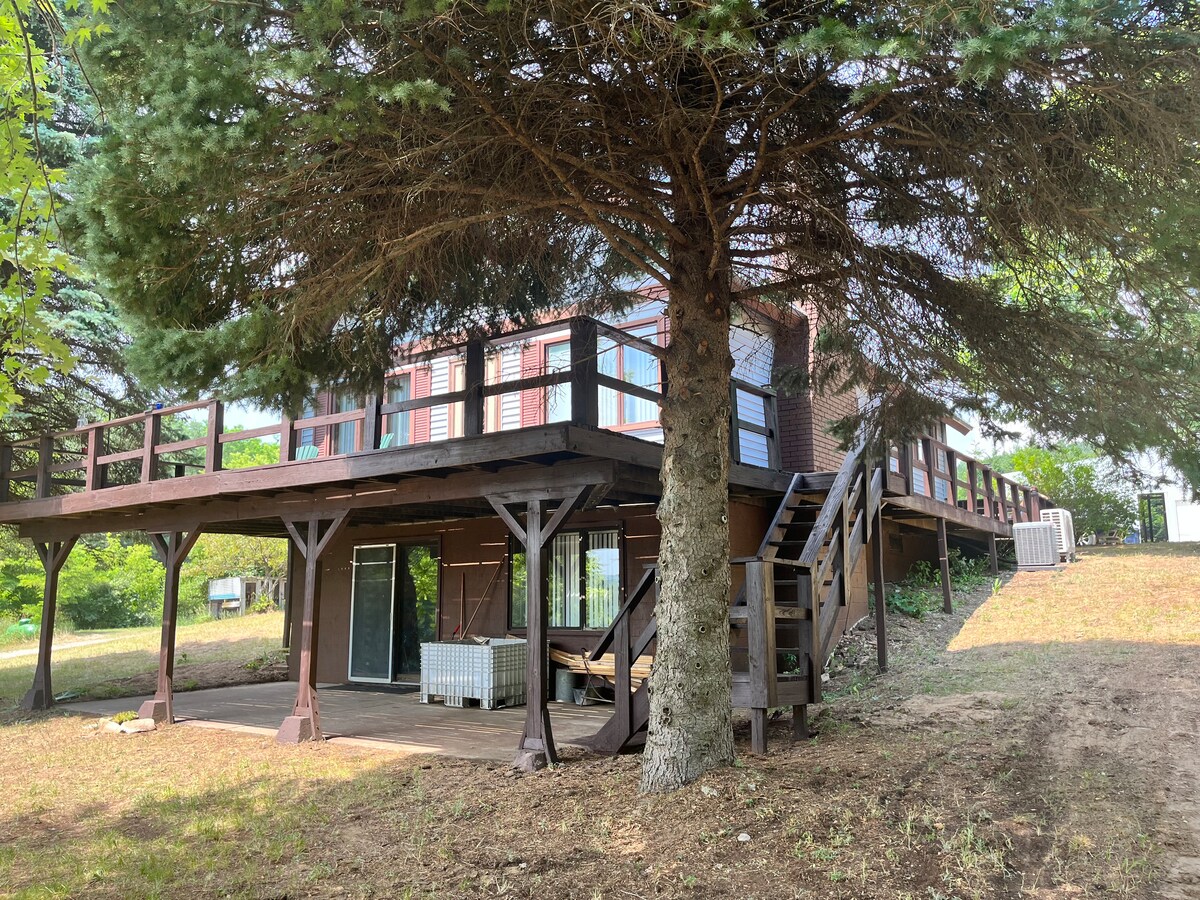 Enjoy all four seasons with beautiful panoramic views. A private suite with kitchenette, full bath, bar area with 2 stools. Near wineries, beaches, hiking, biking and Sleeping Bear National Park & Lake Michigan. Herring Lake across the street. Also included is dock access (for walking/sitting) and kayaks at your own risk. Crystal Mountain fifteen minutes by car. Backyard fire pit for guests to use. Note: steep driveway in the winter you will need a four wheel drive vehicle.