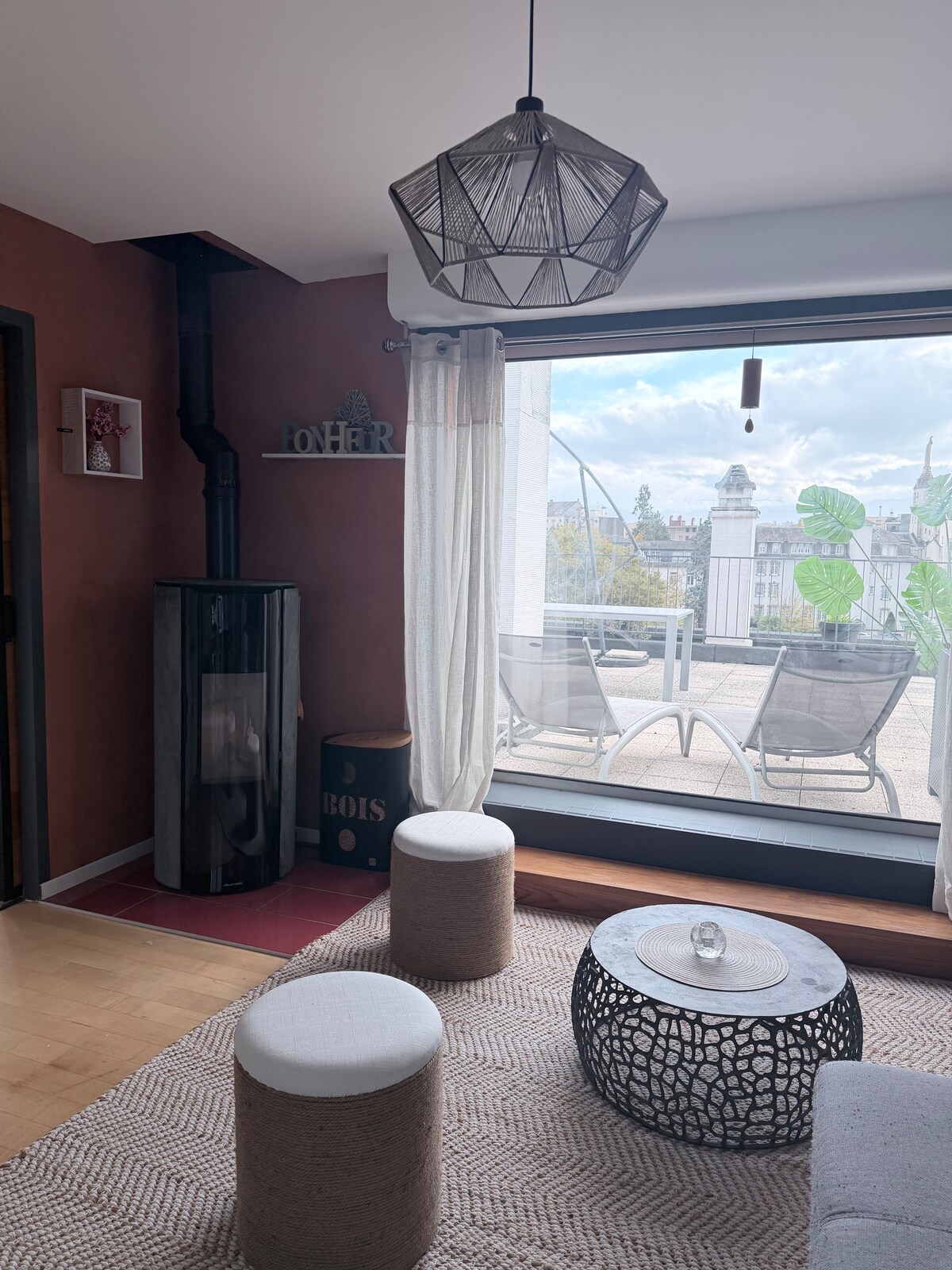 Kick back and relax in this calm, stylish space. Nestled on the 7th and top floor of the Trespoey Residence, the Canopée suite, designed as a hotel suite with fully equipped kitchen, will seduce you. It was designed with noble and ecological materials (wood, granite, A+ paint, etc.) while being functional with a minimalist and contemporary design. The location is in Pau's most popular residential area with easy, free parking.