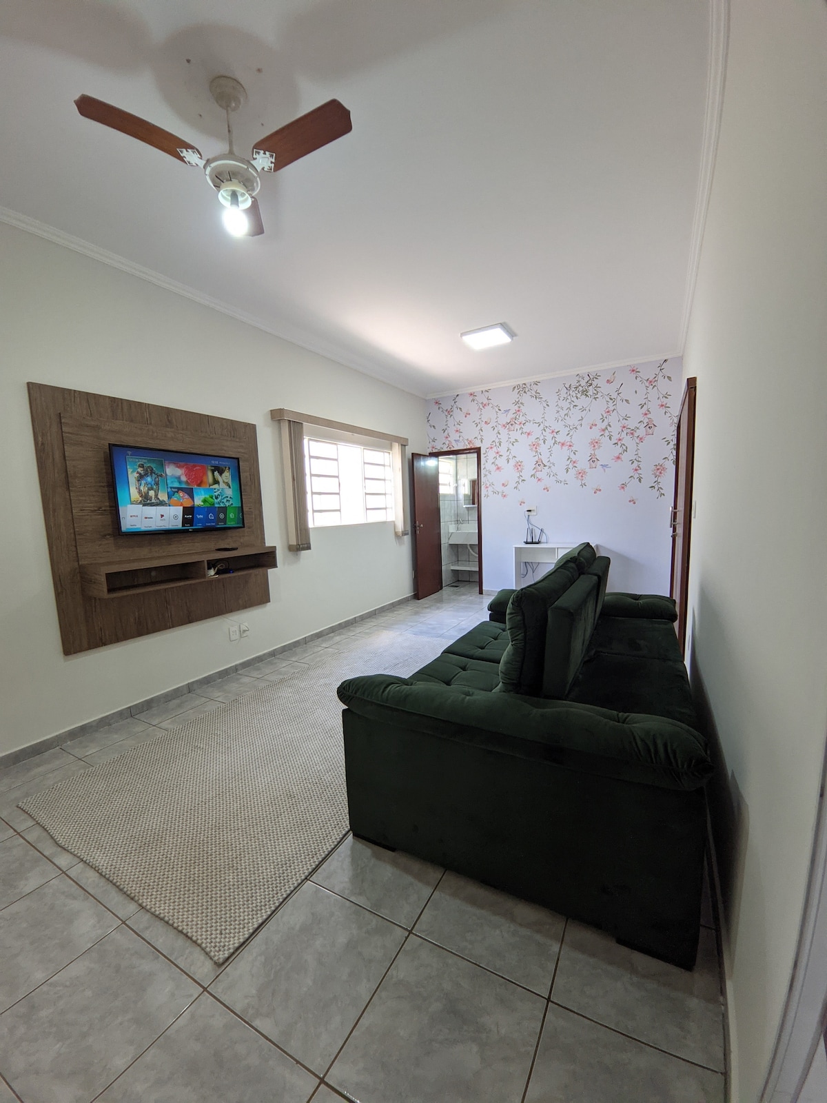 Edicula ( quarto, banheiro, sala e cozinha) toda reformada! Acesso pelo corredor lateral de minha casa onde resido... portao único e seguro! Quarto com TV (ap. TV Box), ar condicionado Cozinha equipada com geladeira, fogao, micro-ondas Lavanderia com tanque de lavar roupas...