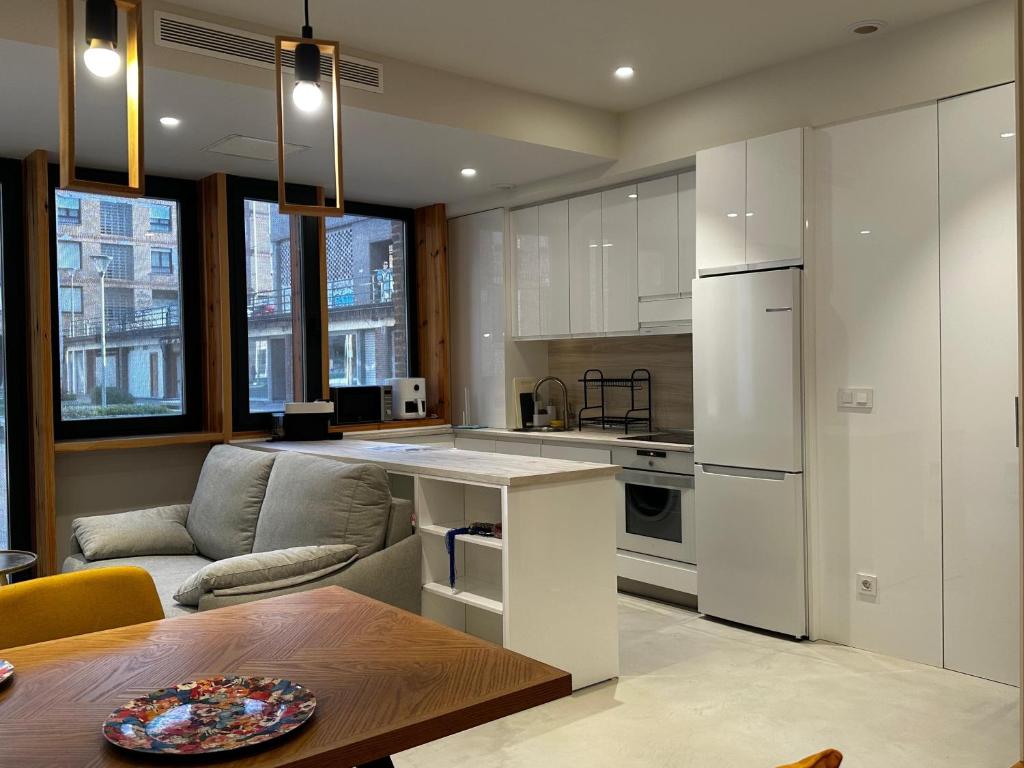 Enjoy the relaxing feeling of the water ,in some modern transparent & wooden furnitures, in a designed appartment full of light even on grey days. Just below the Stadium,5 min walk from the Gran via, 2 min from the Maritime Museum and 15 min from the Gugenheim walking along the river ! Enjoy Bilbao from its old port, have a nice drink on the river terasse bar. Well connected to the old town with the train station just behind, the tram just above or buses on the street.