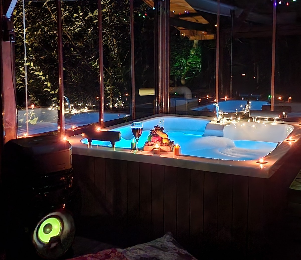 Villa with a Hot Tub and a View of a Waterfall