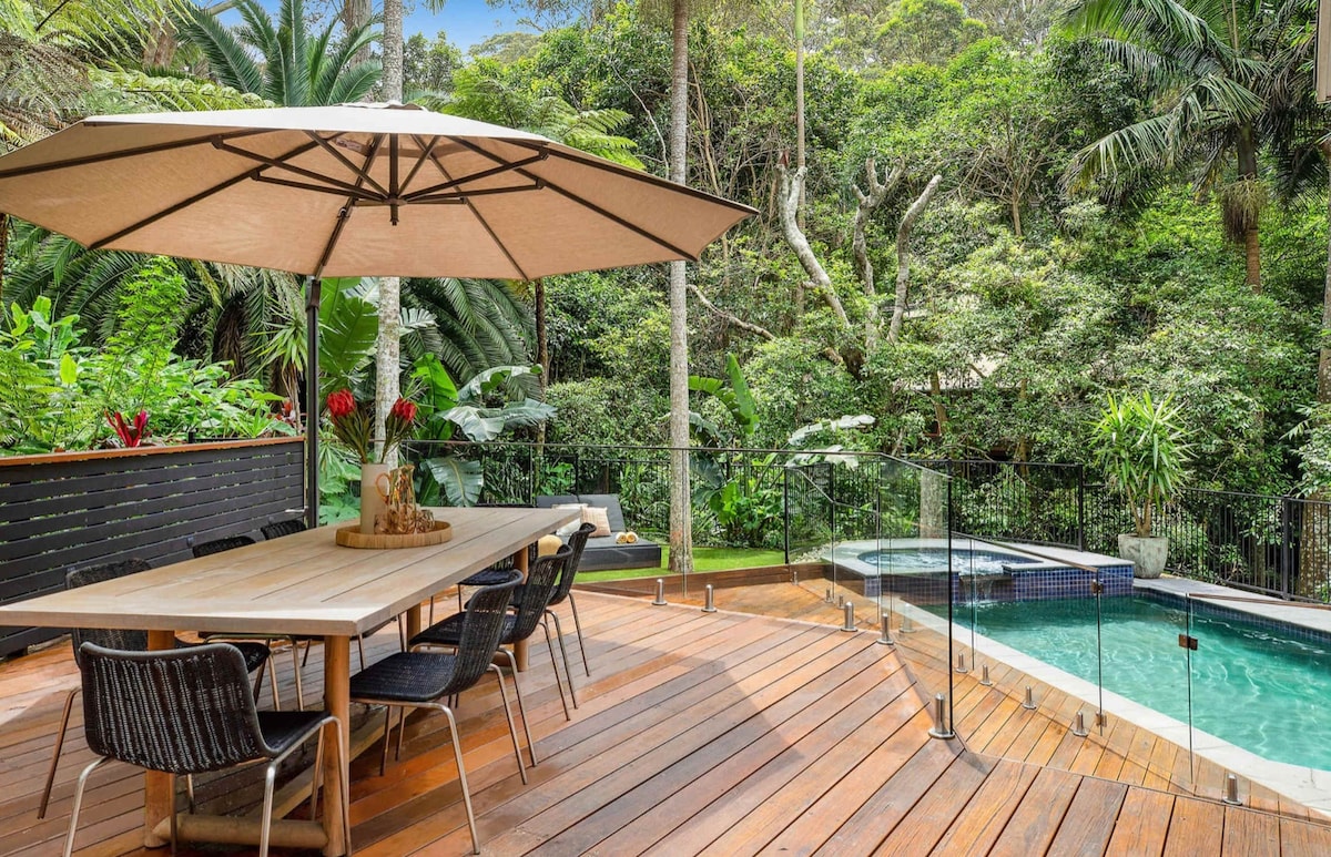 "La Cabane" Escape to a tropical paradise with your loved one at this Balinese-inspired cabana, surrounded by lush gardens and boasting a private pool and direct access to Copacabana Beach. Ideal for a romantic retreat, this property offers tranquility and relaxation while still being within walking distance to nearby shops, restaurants, and cafes. The property is very culturally friendly as it caters for all personal and cultural standards due to the unrestricted privacy that is provided.