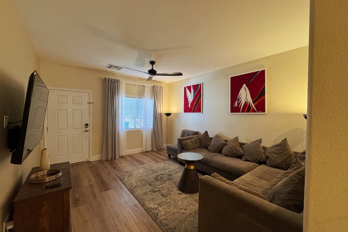Step into The Redstone Residence, a modern masterpiece framed by sweeping mountain views and bathed in natural light in the heart of Summerlin. Floor-to-ceiling windows, designer furnishings, and artful touches create a space that feels both refined and welcoming. Enjoy a chef’s kitchen, fast Wi-Fi & workspace, and in-home laundry. Every room offers ultra comfort with premium mattresses, blackout shades, and sleek finishes—your Summerlin stay redefined.