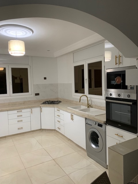 95 m² apartment, fully furnished and equipped, offering high quality services. Ideal location: located in the heart of the new center of Oujda, close to the CHU, the Wilaya. Taxis, cafes and an ATM are accessible at the foot of the building. New accommodation: equipped kitchen, IPTV with Netflix, fiber optic, coffee maker, air conditioning... Quiet residence with free parking available in the basement. Unmarried Moroccan couples are not allowed