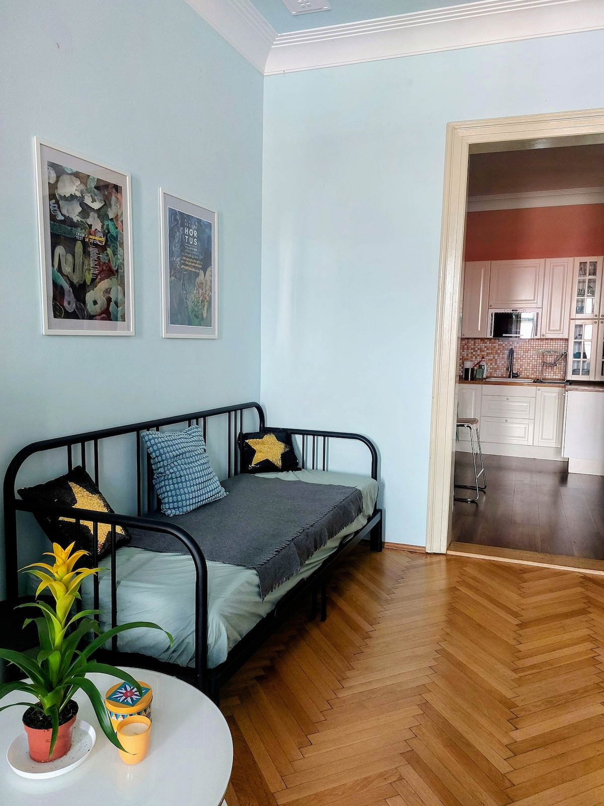 ★ Comfy Bedroom and Huge Balcony ★ Up to 4 Guests ★ Next to Main Railway Station ★ Great Espresso ★ Netflix TV ★ High Speed WiFi ★ Washer ★ Take a rest in bright, comfy nest with huge balcony. Top (5th) floor of centrally located building with no elevator, quiet romantic place. Good choice for both experienced travellers and occasional tourists. Next to main station, airport 30 mins, Old Town attractions, shopping places within 5 mins walk. Netflix TV, high speed WiFi, washer, nice kitchen.