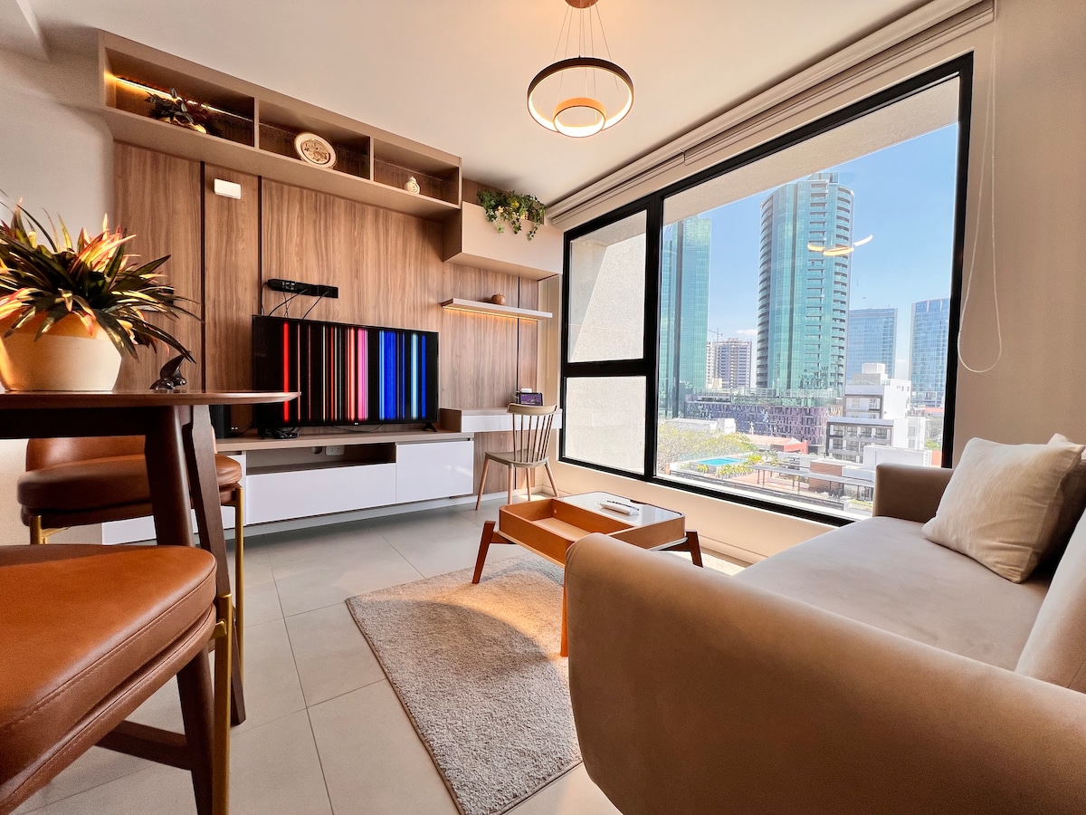 Luxurious 1 bedroom 50 sq. meter apartment in Uptown Equipetrol. Come and relax in the best area of Santa Cruz with the greatest exclusivity, with business and commercial activity. Enjoy the condominium's beautiful social areas: Infinite heated pool Movies Digital gym Barbecues Living area Meeting Room/Co-work Washing and drying area Parking/Electric Car Chargers Close to: Universities, Banks, Bars, Business Center, Shopping Centers, Hospitals, Restaurants, Squares.