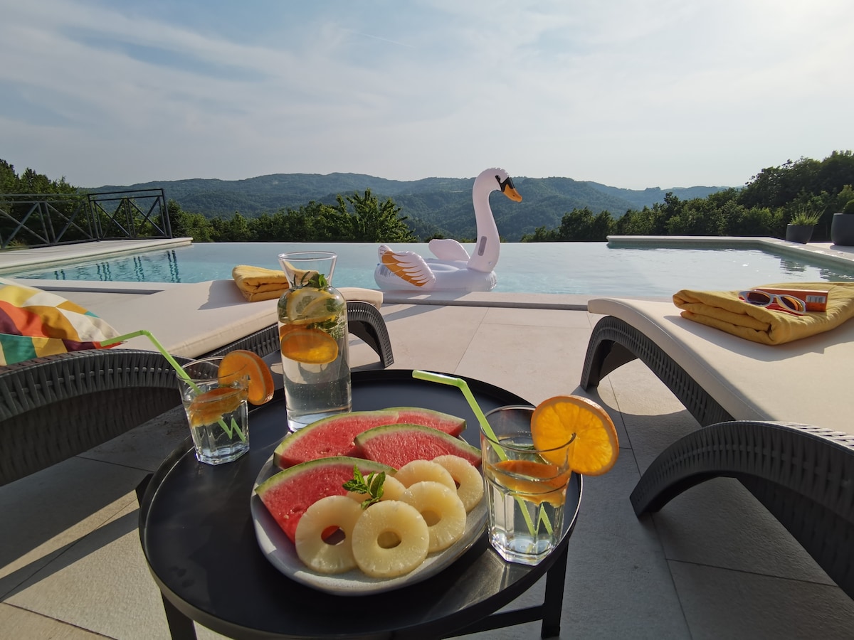 A holiday home in the heart of Istria offering you private heated pool with jacuzzi and indoor jacuzzi & sauna! Surrounded by peaceful nature with views of a lake, vineyards, and olive groves. Two bedrooms with 1.8m-wide beds and fold-out extra beds. Living room with pull-out sofa. Heated pool with water and air massage. Wellness room with hydromassage tub (4 ppl) and infrared sauna (3 ppl). Exit to private sunbathing area (clothing optional). Parking for 2 vehicles with EV charger.