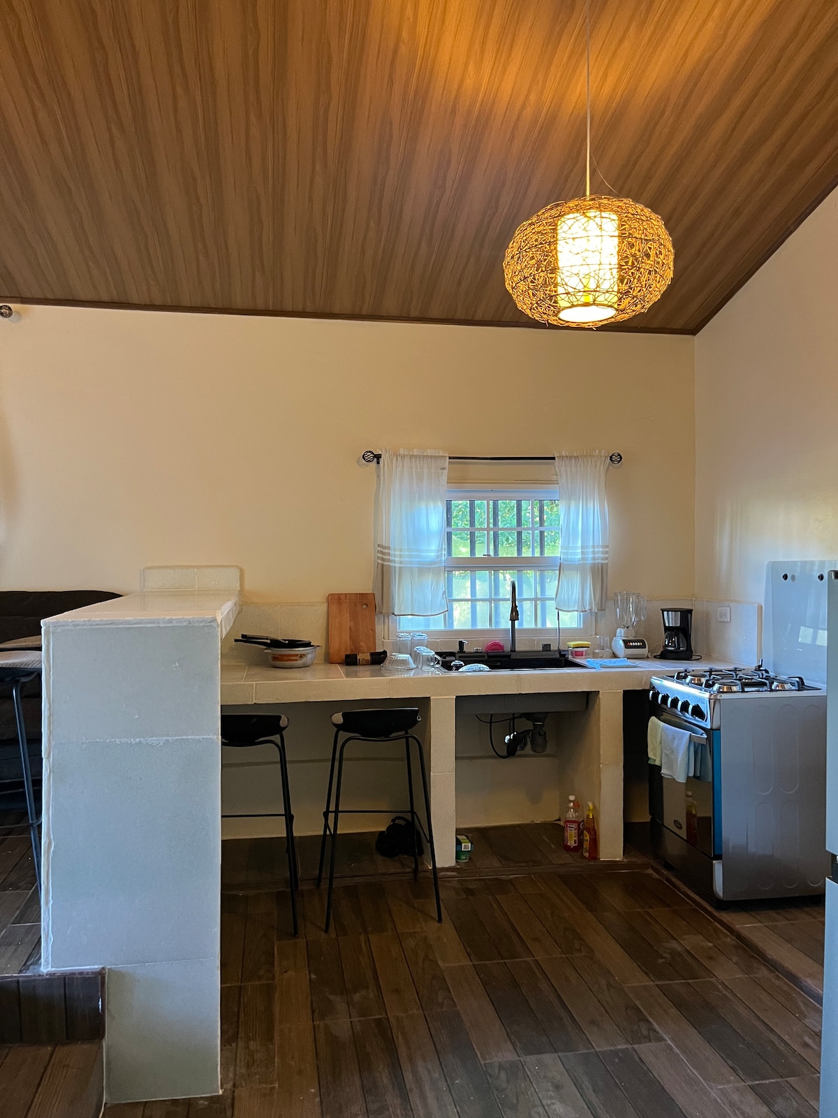 Forget your worries in this spacious and serene space. The new 1 bedroom loft casita sits on 2.5 hectares of jungle/garden bordering a swimming river, enjoy nature, a peaceful retreat. A glass of wine at night on the balcony, or a cup of coffee with the parrots watching the sunrise, all this and just 15 minutes to the city of David, 35 minutes to the beach, or 50 minutes to the mountain and hiking in Volcan Baru.