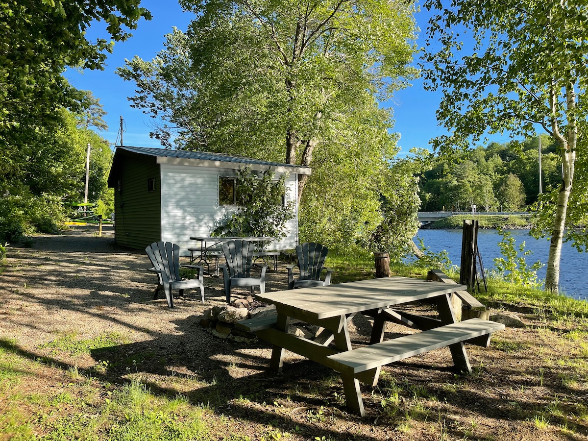 Modern Waterfront 1 bedroom cottage on the lake. Enjoy one of many water toys, Kayaks, Canoes , Paddle Boats, Paddle Boards! Relax on the deck with the beautiful lake views, or get around a bonfire. Walk out deck with a bbq, kitchenette, Satellite Tv, WiFi, AC, the perfect get away! Single room, 1 bedroom, and 3 bedrooms and 5 bedrooms cottages available. **May - Oct and selected weekends, Check in and Check out days, , Monday, Wednesday or Friday. Weekends 3 days, Long Weekends 4 Days**