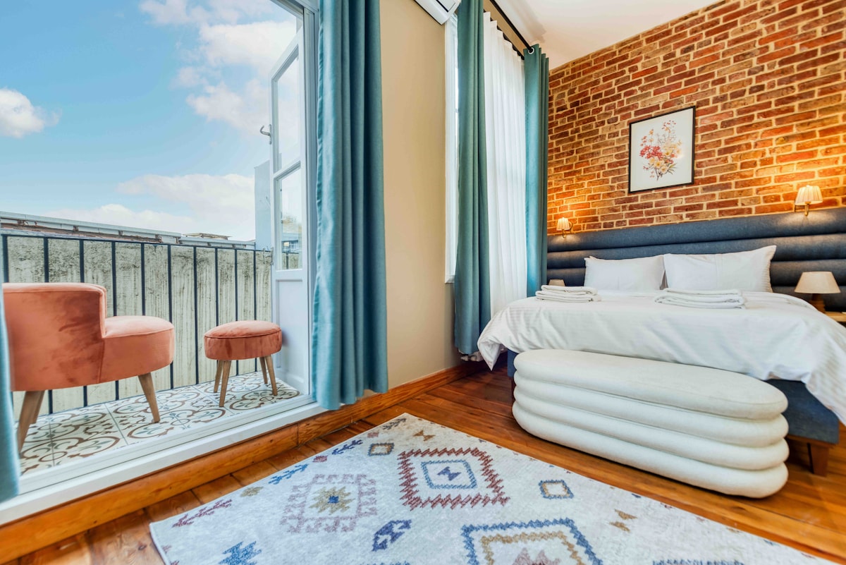 Welcome to Suite 8, the epitome of luxury where two continents converge. As our penthouse suite, it offers a terrace with unmatched Bosphorus views, showcasing Istanbul's unique blend of Europe and Asia. Step out to explore Taksim Square, the Historical Peninsula, and Galataport, then retreat to your suite, filled with chic décor and modern amenities. Experience Istanbul's apex from Suite 8, your ultimate luxurious escape.