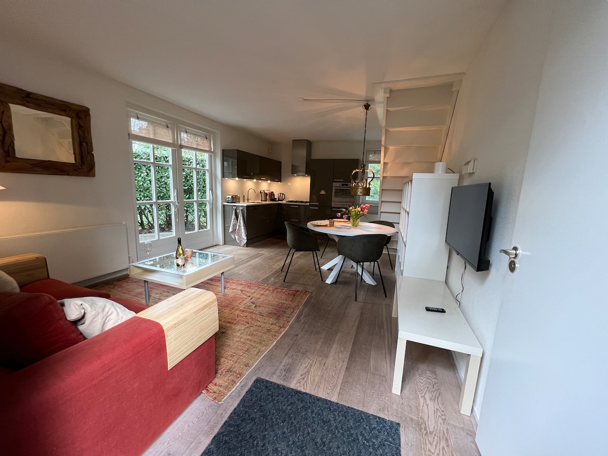 Cozy & stylish cottage in Oisterwijk – enjoy peace and nature Cozy cottage, located in a quiet park in the beautiful Oisterwijk. Charming accommodation furnished with care and combines vintage furniture with natural tones for a warm and homely atmosphere. Lots of light through large windows and a cozy dining and sitting area. Private parking, separate garden, fully equipped kitchen (combi microwave) and smart TV. Located between Oisterwijk forests and fens. Lovely hiking/ cycling.
