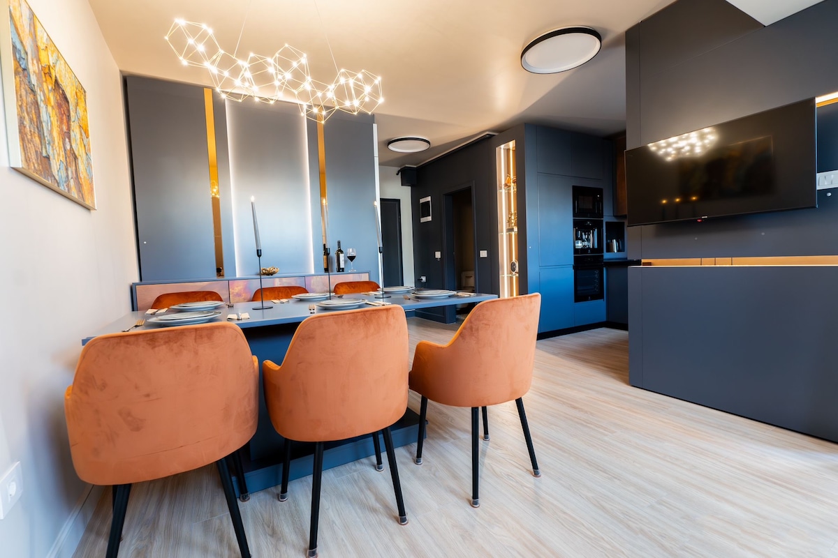 Stylish space with a unique cozy feel. Enjoy amazing views over the city skyline and best natural landscapes in Brasov. Engulfed by nature, yet centrally located and well connected. Explore the surrounding trails and Tampa reservation, while being a stone throw away from the historic centre of Brasov. After a full day, kick back and relax by the indoor fireplace, or enjoy the fresh air on the beautiful terrace while experiencing an unparalleled level of privacy and tranquility.