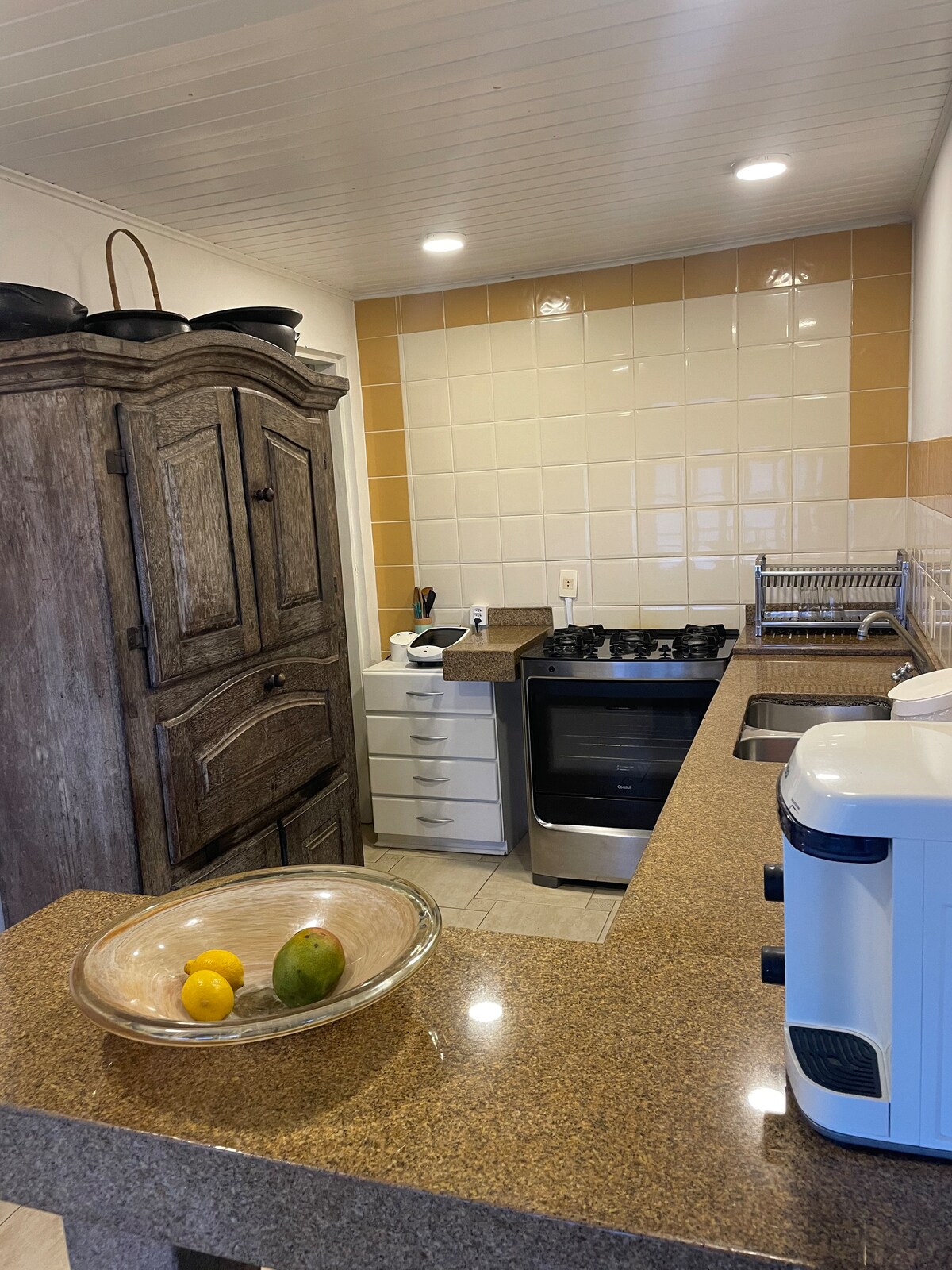 Casa na Pedra: Unique and Sustainable Retreat in Florianópolis Stay in a magical space where nature and comfort meet. Casa na Pedra, built around an imposing rock formation, offers a unique atmosphere of peace and connection. Highlights: -Sustainability: We produce our own clean energy, respecting the environment. - Unique design: The central stone brings charm and a special atmosphere to the space. -Nature and tranquility: Surrounded by a charming garden.