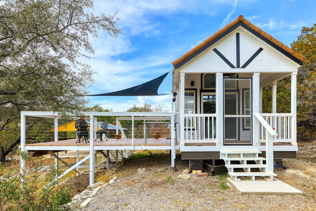 New tiny home in Spicewood with modern furnishings & every comfort of home. Enjoy making dinner in the fully equipped kitchen with full sized appliances. Spend evenings on the large deck overlooking the city lights. Near Briarcliff marina on Lake Travis & Willie Nelson's Luck Texas. El Gaucho Winery, Spicewood & Stonehouse Vineyards, & Iron Wolf Distillery are only minutes away. Easy day trips to Fredericksburg and Dripping Springs make this the perfect base for your Hill Country Getaway!