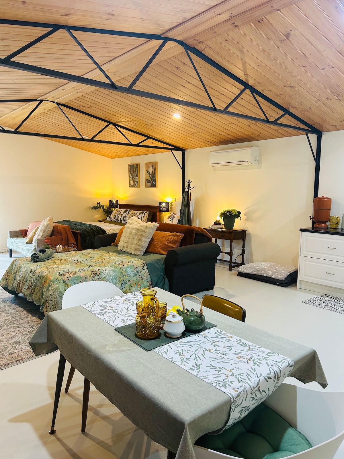 • Tranquil private Cabin with views over rolling hills set on the edge of the Forest. • Only 6 min from Bridgetown • Fully-equipped kitchen • Queen bed in main Cabin and a Single Trundle bed if required, there is also the option of our Bunk room which comprises of 1 Single bed and 1 Double bed • Spacious bathroom with under-floor heating, large shower, toilet, vanity and views, accessible via covered verandah • Visit our YouTube channel @forestedgecabinwa or insta @forestedgecabin