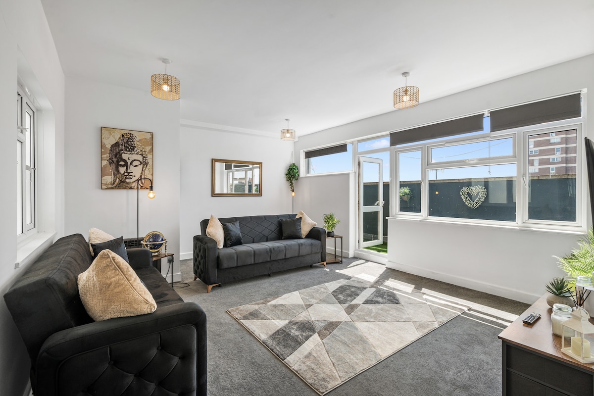 Welcome to my spacious and inviting flat, just a 2-minute stroll from the beach! A true home-away-from-home, the heart of it is the expansive kitchen and open living area, where you can unwind on plush sofas surrounded by cozy throws. It's the perfect space to relax and whip up a meal after a day of exploration. Tucked away at the back of the flat, the bedrooms offer a quiet and tranquil retreat. The natural colours and calming hues create a peaceful ambience, ensuring a restful stay.