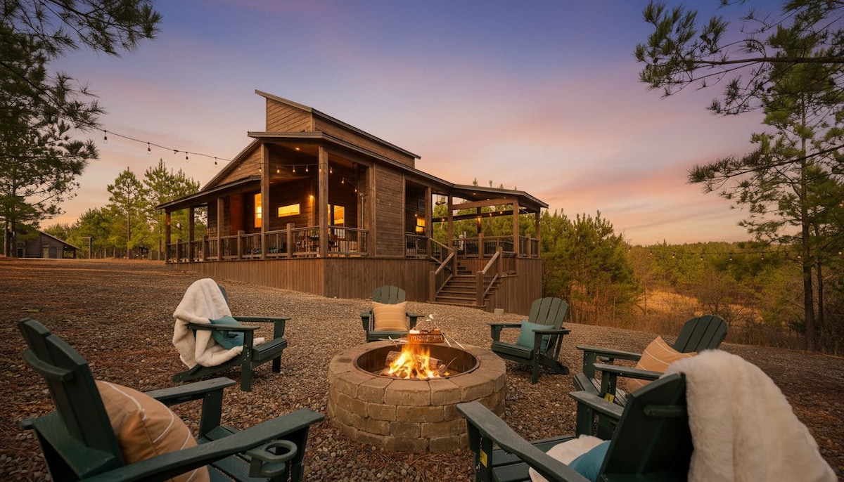 Modern Luxury Cabin | 2 King Suites • EV Charger • Pet-Friendly Discover The Modern—a stunning, design-forward cabin on 3.5 private acres in Broken Bow. Featuring soaring 18-ft ceilings, large windows, an all-white chef’s kitchen, wood stove, and 2 luxe king suites (one w/ soaker tub). Enjoy forest views, cozy up by the fire, and charge your EV onsite. Dog-friendly too! Book your unforgettable getaway today.