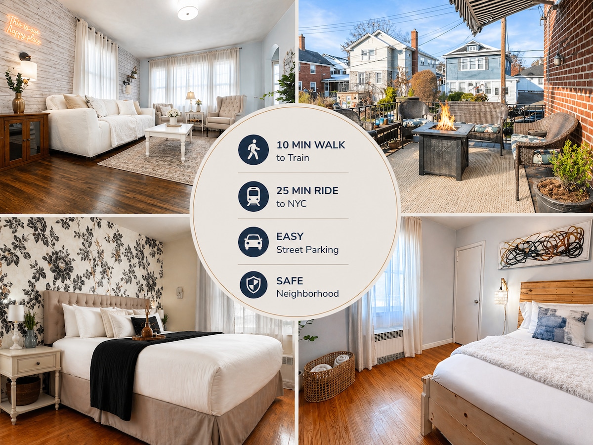 Spacious 3BR • Sleeps 12 • Near NYC Train + Parkin
