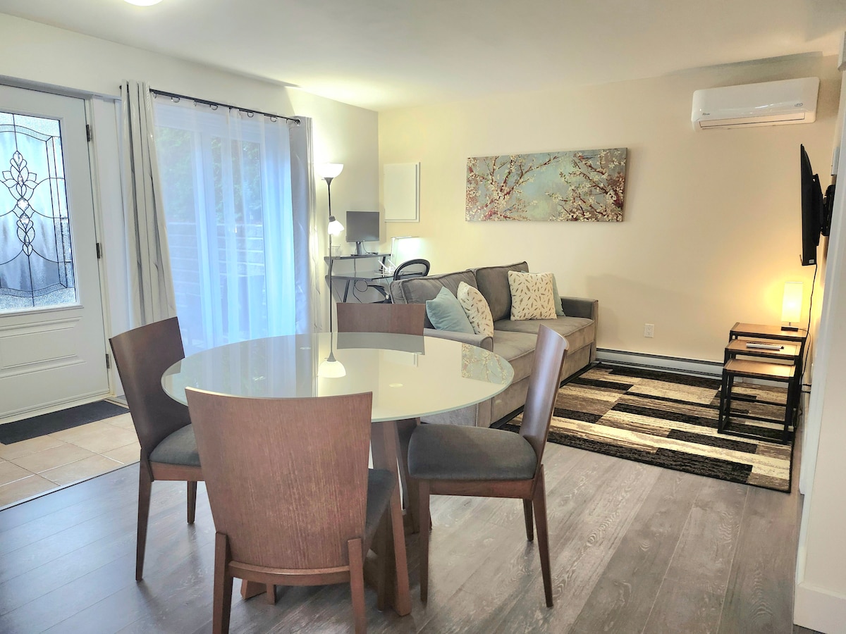 Ideal with private courtyard Pleasant and quiet, near downtown Montreal, Longueuil, Saint-Lambert (Université Sherbrooke, Campus Longueuil, hospital) and close to all services (public transport, grocery stores, Quartier DIX 30, restaurants, easy home delivery) You'll love this place because of the modern layout, the cleanliness, the privacy, the private parking and courtyard, cable TV... Perfect for couples, solo or business travelers, and families Property number 305281