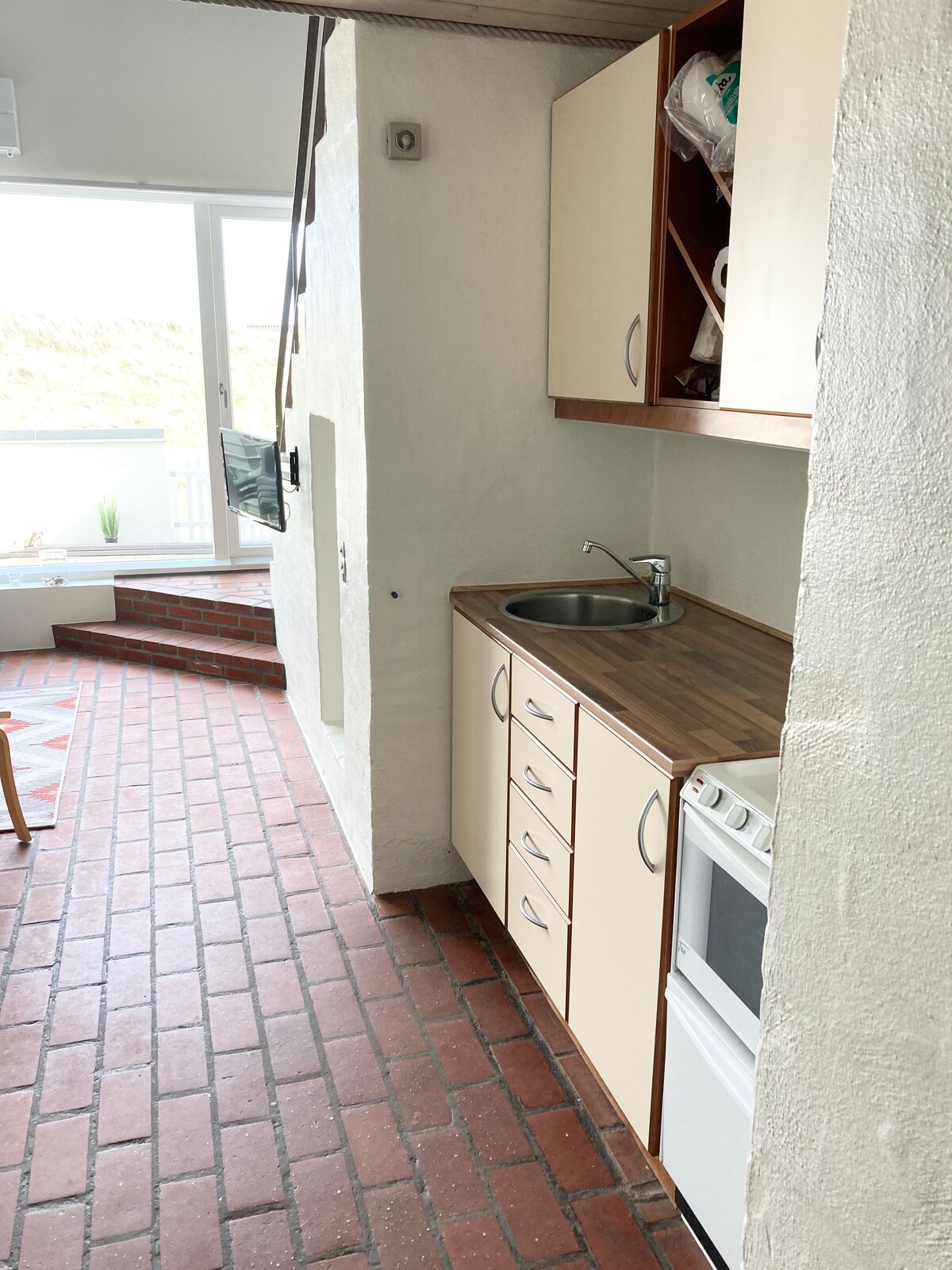 Bright holiday apartment located 50 m from a child-friendly beach on the North Sea. The home is part of the iconic 70s holiday architecture with brick floors and panoramic windows overlooking the dune landscape. And with Denmark's beautiful mountain bike routes a few kilometers away, beautiful hiking routes in Fosdalen, as well as the possibility of renting a studio for art development, there are many possibilities. There is access to activity rooms with table tennis and indoor pool as well as sauna from Easter to the autumn holidays.