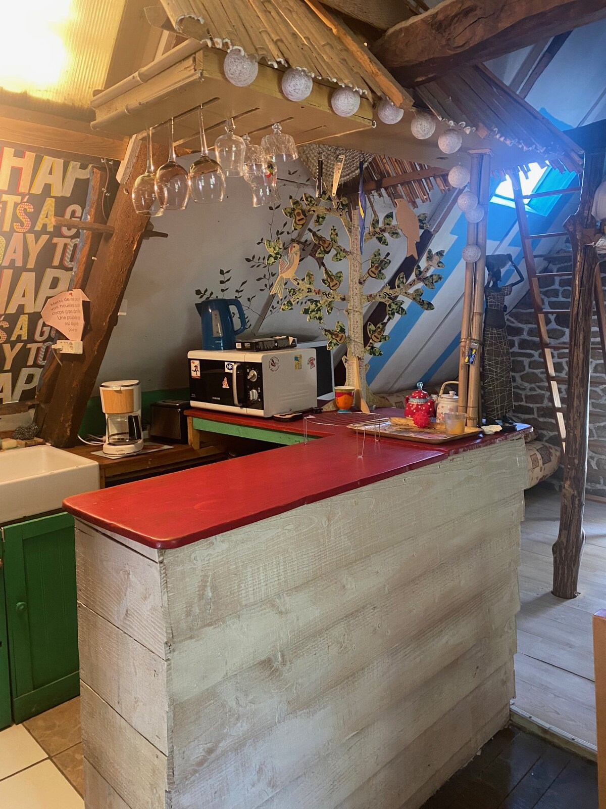 ⚠️ It is not allowed to book it for someone else, bookings are nominative. Enjoy a stay in this loft studio located on the top floor overlooking the Nantes to Brest canal. This accommodation offers a private hammam in the shower, a two-seater spa bath, a fully equipped kitchen (oven, stove, microwave, coffee machine) and a connected TV with sound bar. Its loft spirit with beautiful ceiling height creates a warm and modern atmosphere.