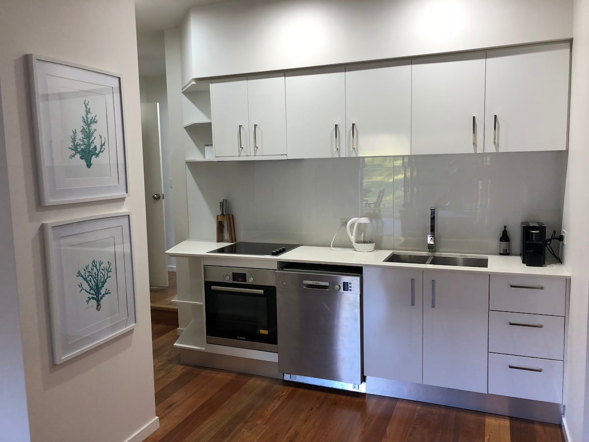 Relax in this self-contained 1-bedroom unit with forest views and laid-back coastal décor. Sleeps up to 4 with a king bed and comfy queen sofa. Located in quiet, leafy Buderim just minutes from beautiful Shunshine Coast beaches, shops and restauraunts. Ideal for couples, small families or solo travelers looking for a cozy and convenient escape. 🎬 Netflix, chromecast, 60" TV 💻 fast gigabit ethernet 🏖 10min drive to beaches 🛏 sleeps up to 4 (1 king bed+1 queen sofa) 🏠 self-contained comfort