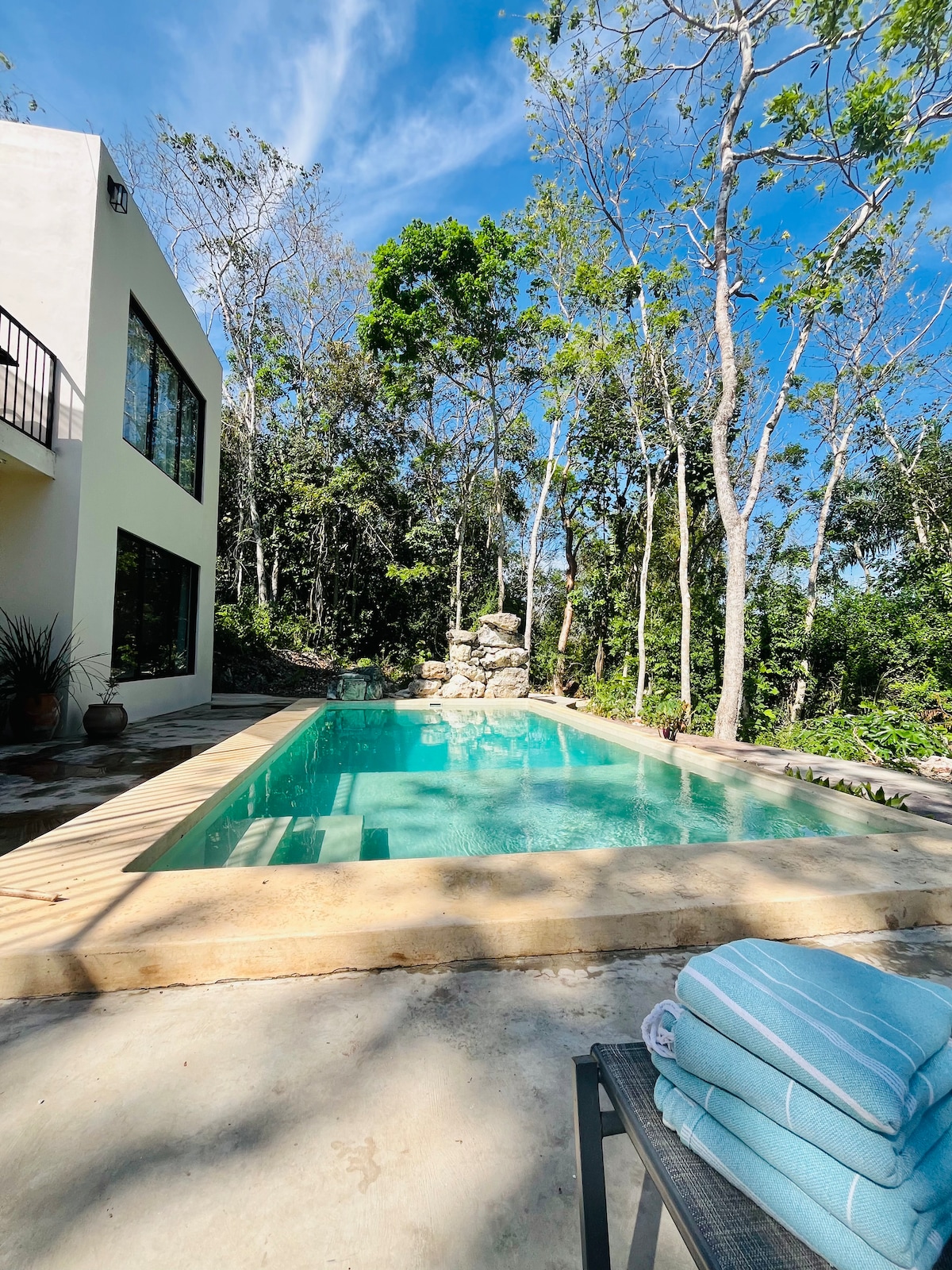Peaceful 3 bed, 2 bath home just 4 km from Bacalar town with private pool and exclusive lagoon access a 2-minute walk away. Nestled in the jungle, in a private gated community, this retreat offers modern comforts, a full kitchen, and open living spaces. Perfect for families or friends looking to relax, explore, and enjoy the beauty of Bacalar. Unwind by the pool or spend your days on the dock enjoying the magic of Bacalar lagoon.