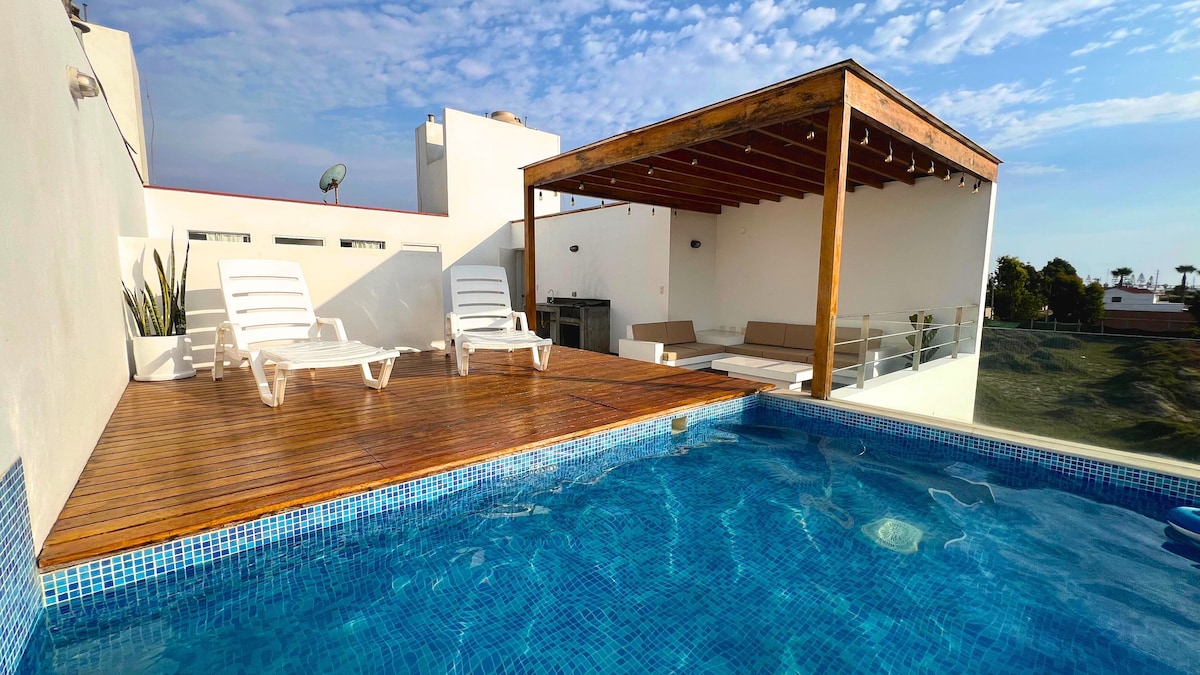 Enjoy a few days of relaxation at Casa Malala. Located at km 86.5 of the Pananamerica Sur, in a gated community, just 10 minutes from Boulevard de Asia. The price includes daily housekeeping for guests to enjoy to the fullest. The terrace is equipped with an artisan oven, grill, wok, and Chinese box. Ideal for families. Casa Malala also has a private pool and common areas of the condominium (games for children, tennis court, soccer, volleyball, and swimming pool)