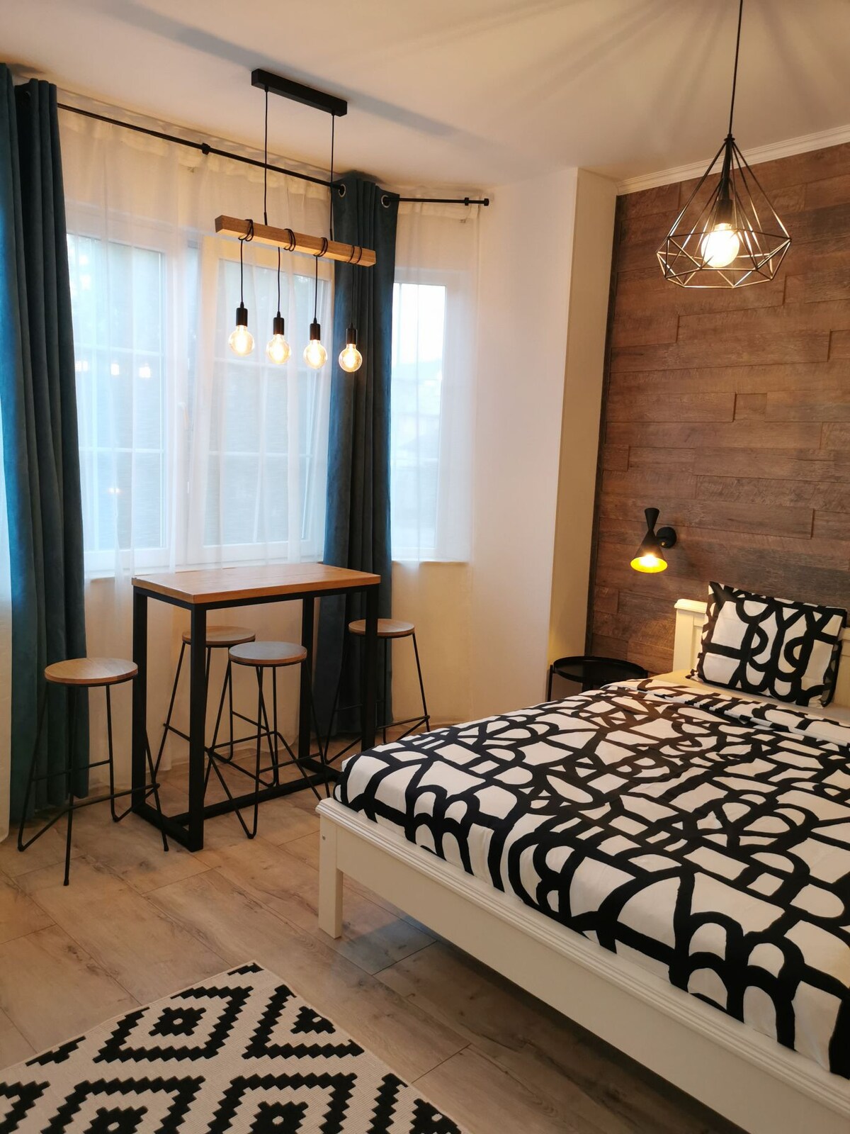 G&A Luxe Apartment Central welcomes you in the heart of Târgu Jiu, just steps away from the Brâncuși Axis on Heroes’ Avenue. Located on the 1st floor, in a quiet yet central area, with private, video-surveilled parking. A modern and stylish 2-room apartment with a spacious bathroom, balcony, and fully equipped kitchen. Amenities: high-speed Wi-Fi, Netflix, Xbox, air conditioning, and self check-in via Smart Lock. We guarantee you’ll feel at home, with all the comfort and style you deserve.