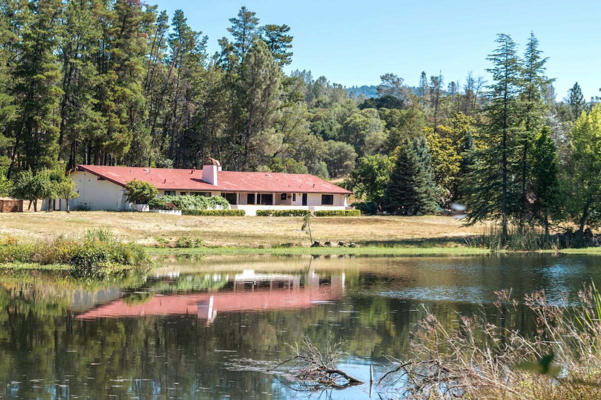 Private Lakeside Estate and Retreat on 85 acres with 5 bedrooms. Located in the foothills of Yuba County, California, the property is a rural countryside estate overlooking a seven-acre lake in a secluded, quiet rural area with easy access to Bullards Bar boating, farmers markets, Collins Lake's famous ice cream, hiking, and a gateway to the Sierra Foothills. Rent the entire house, 6 rooms, for up to 12 guests with a tranquil view of the private lake. We look forward to hosting you.