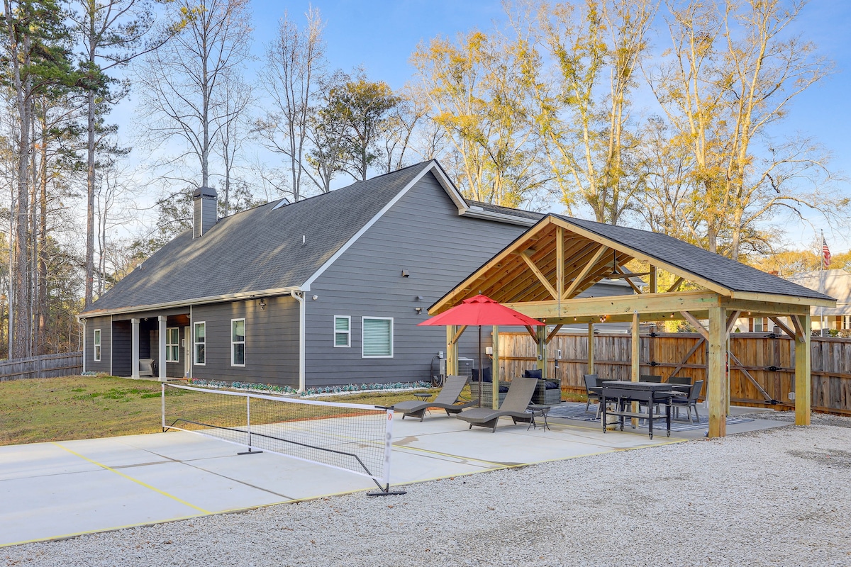 2,272 Sq Ft | Private Pickleball Court | Cookout Ready Searching for the ultimate family retreat outside of the city? Look no further! This spacious Locust Grove vacation rental offers the ideal blend of tranquility, convenience, and endless fun! Play games of basketball or soccer in the backyard while the rest of your crew lounges under the gazebo. After shopping at Tanger Outlets, return to the 4-bedroom, 3-bath home and share stories by the fire. Your unforgettable Peach State escape awaits!