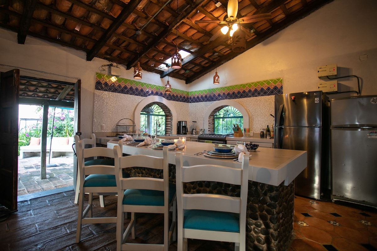 Discover Casa Bamboo, a charming haven among our four casas at El Jardin. This palapa, perfect for up to 3 guests, boasts a queen-sized 'hanging' bed and a cozy single bed, all complemented by a private bathroom. Our communal space offers a fully equipped kitchen, inviting living room, and an oceanfront yard. Imagine savoring moments in our dining room with sea breezes as your backdrop A dedicated on-site manager ensures seamless comfort. Ready to assist with any questions you may have.