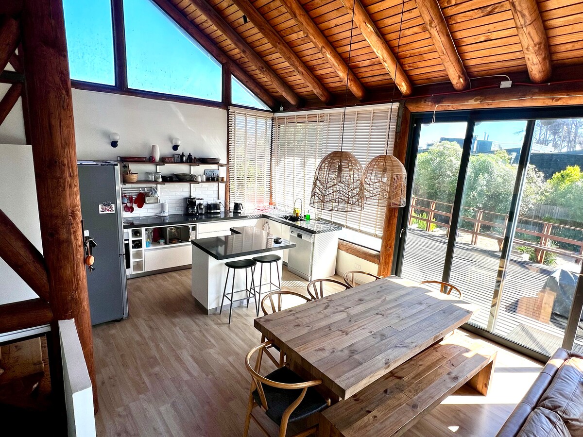 Exclusive and romantic loft house in the old Aguas Claras estate, surrounded by trees, tranquility and nature, with unforgettable views of the creek and its ancient native forests, just 15 minutes from Cachagua and the area's main beaches. The house has 3 modern spaces divided into a living room with a kitchenette, 2 bedrooms + bathroom and terrace. Direct access to trails, hikes and trekking in the area. A real gem to enjoy the nature of the place!