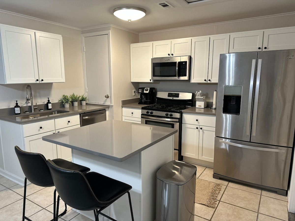 Beautiful and charming home with 4 bedrooms and 3 baths in a quiet neighborhood setting. This home can accommodate a large group or family. 2 of the 4 bedrooms have attached bathrooms. 4 bedrooms have queen beds. A large fenced backyard, great for pets, grilling and hanging out. Fully stocked kitchen, baths, washer & old school video arcade game with 100s of games. Centrally located, so you will be within a short distance of great parks, shopping and restaurants. Come unwind!!