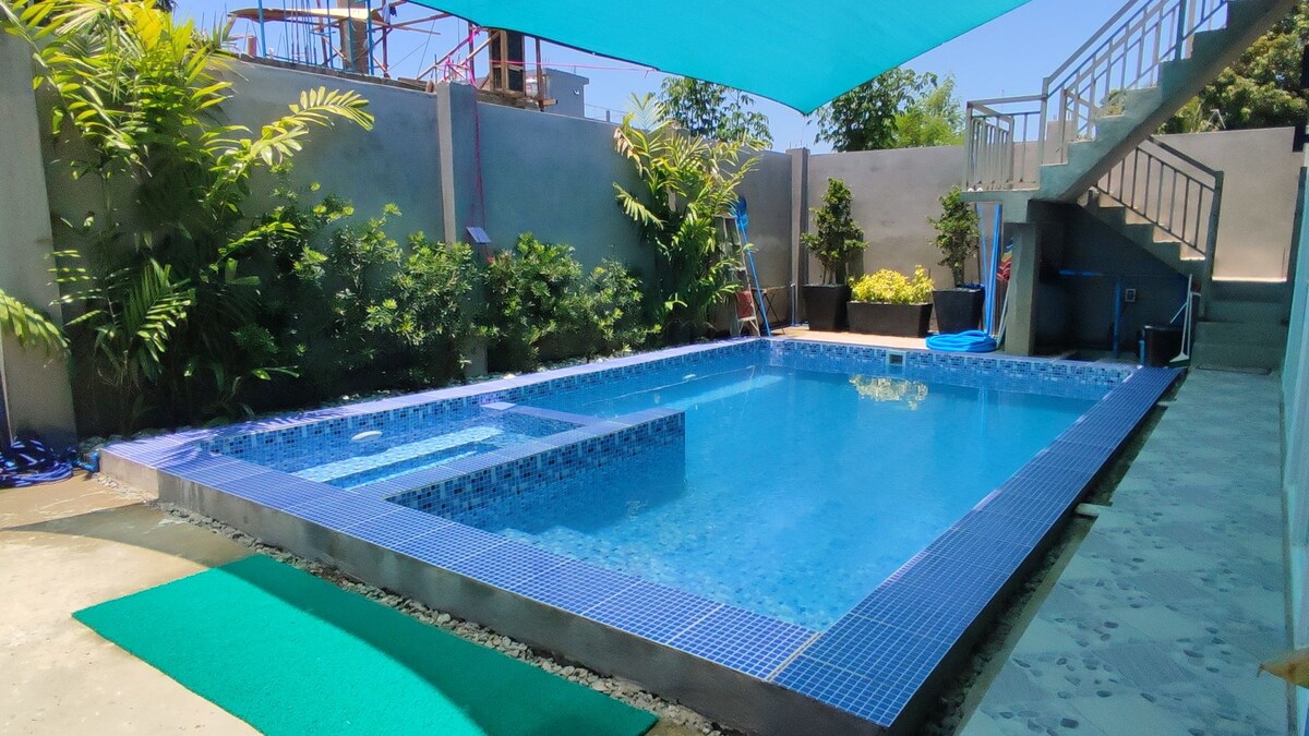 Bring the whole family to this great place with lots of room for fun. �Villa Estela Amenities �Swimming pool �Fully air-conditioned room with loft and small sala with TV (good for 10-15 pax only) �WiFi � CCTV secured �Free use of Kitchen utensils �Free use of Gas stove �Barbecue grill �Free use of Refrigerator, rice cooker �Provision of 1 gallon of mineral water �Dining area �Parking space for 6-7 cars � Comfort room (2) Please take not that towels are not provided due to Covid..