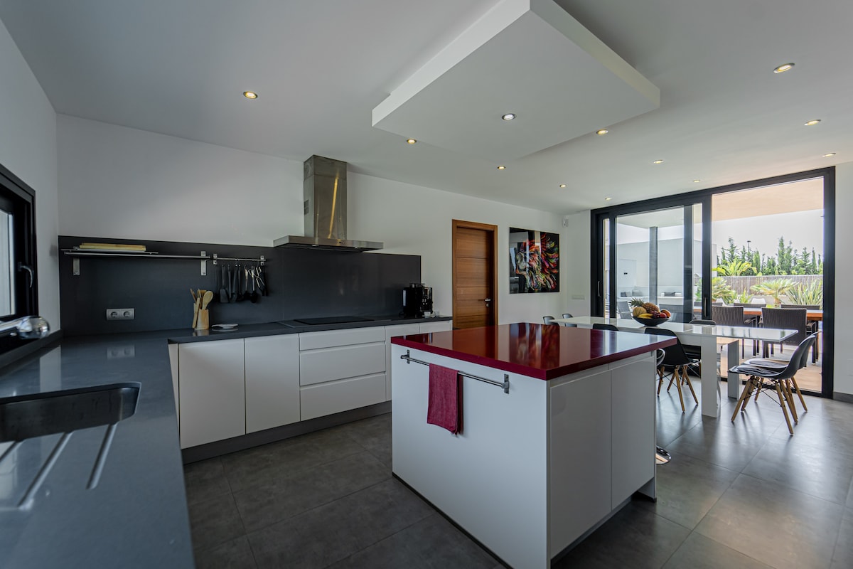 Это стильное жилье идеально подходит для групп ценящих комфорт и удобство логистики. Расположение позволяет быстро добираться до двух крупнейших городов Ибицы (15 мин в каждую сторону). Просторная кухня, отдельная столовая, спа-зона. Три сьюта. В пешей доступности гольф-клуб и ресторан Amante. пожалуйста, имейте в виду , что на территории расположены два независимых друг от друга здания : это и ещё одно, в котором может находиться до 4х человек, без доступа к бассейну, но с общей парковкой