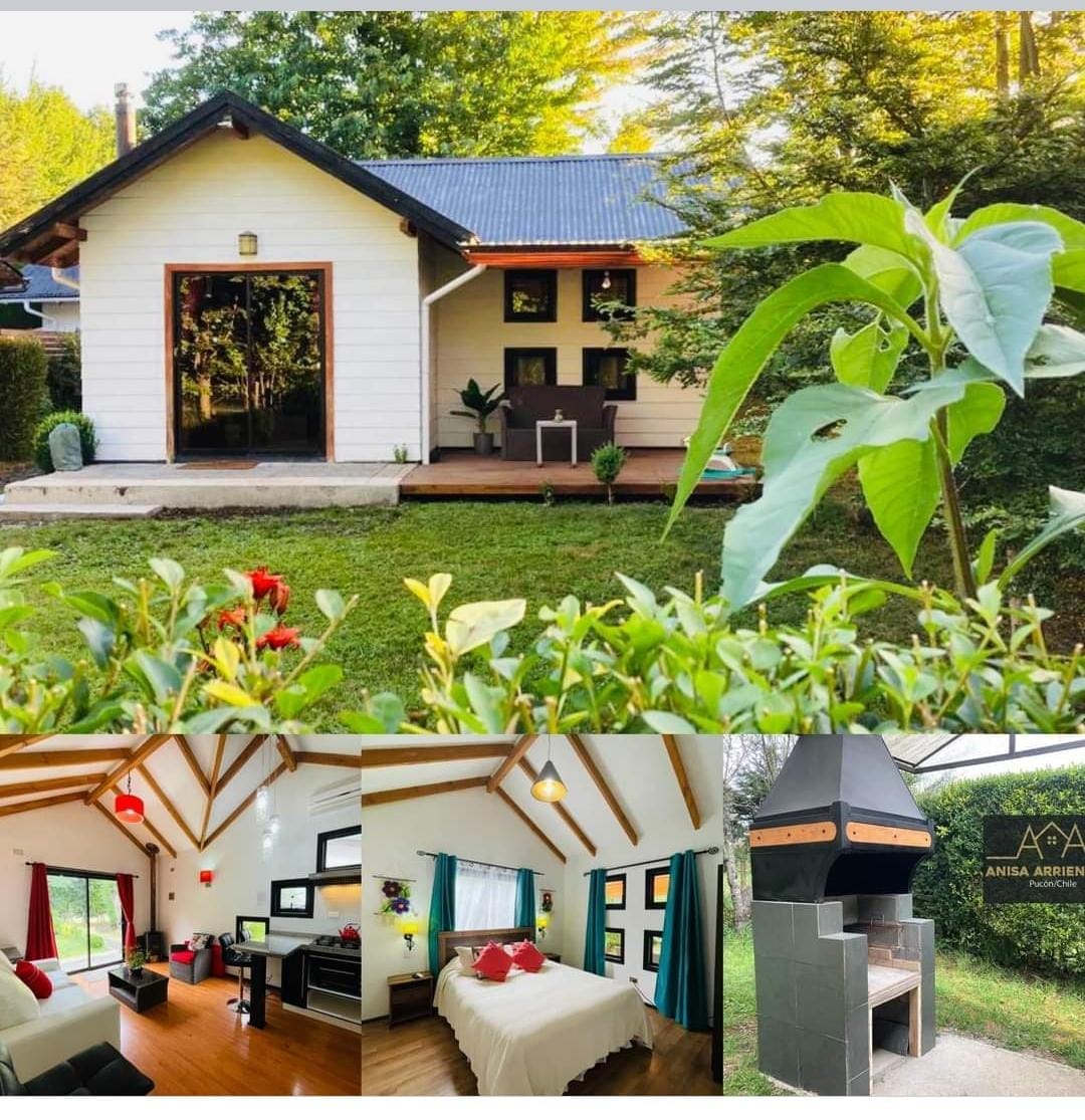 Spacious house just a 10 minute drive to downtown Pucon (on being cam to volcano no taco) Kitchen, living room and integrated dining room, where you can enjoy with your family or friends 1 Bedroom en suite, with ensuite bathroom. 1 room with a full bed. 1 bedroom with two beds. It also has a living room. An en-suite bathroom plus a full bathroom and one for guests. Large private garden with swimming pool. Option to add extra bed.