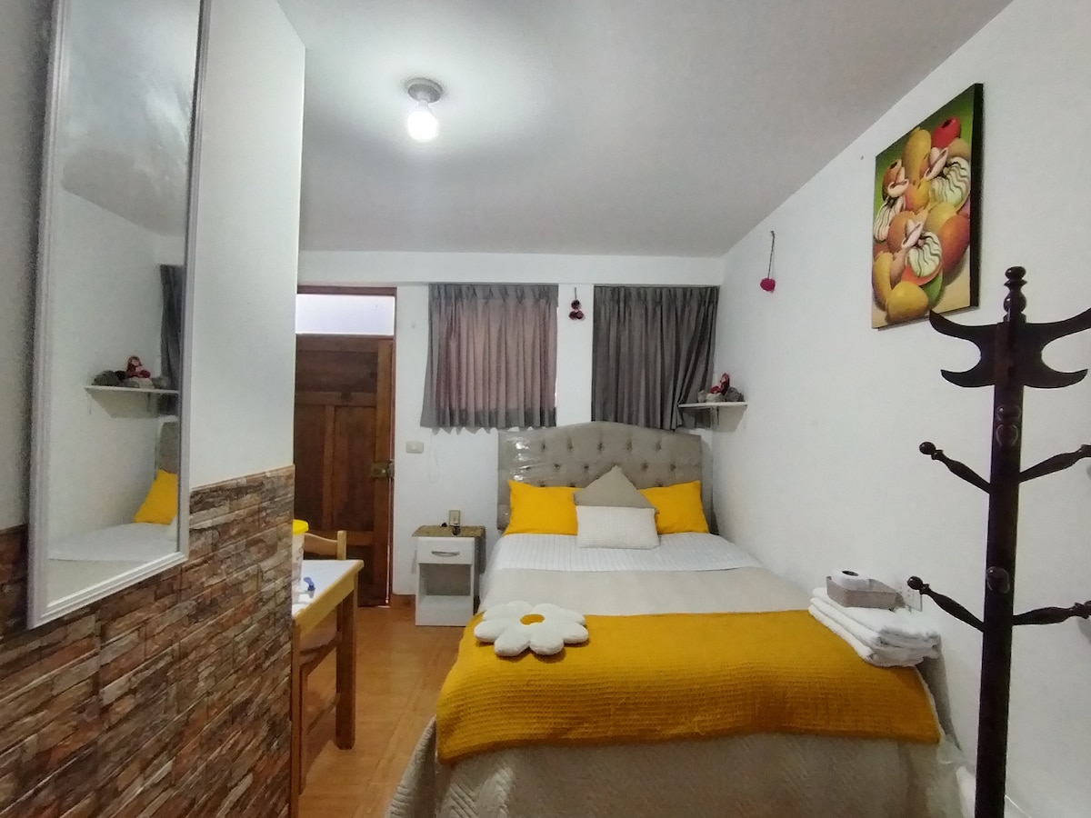 Casita con 2 Habitaciones independientes (1 cama matrimonial + 1 cama simple) dentro de un ambiente campestre. Areas comunes de living, comedor, cocina a gas, refrigerador y con utensilios básicos de cocina y comedor. El baño tienen agua caliente 24 horas, wifi. Esta Ubicado a 5 minutos del Terminal de Buses y a 10 Minutos del Centro Poblado. Referencias : Frente a Iglesia Adventista de Urubamba, Zona posterior a Centro de Terapia Fisica “Fisio Med”.