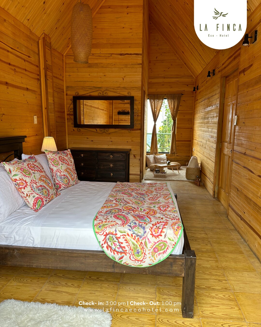 Cabin built of guadua and wood. Located in the middle of bamboos, lemon trees, guavas and bananas. From the room and from the balcony you can admire a unique panoramic view of Cali. The most spectacular thing is the scenery that can be seen from the private Jacuzzi of this cabin, which has a panoramic window. From here you can see the walks of the guatines with their children; of the woodpecker drilling or the hummingbirds sucking wildflowers native to farallons.