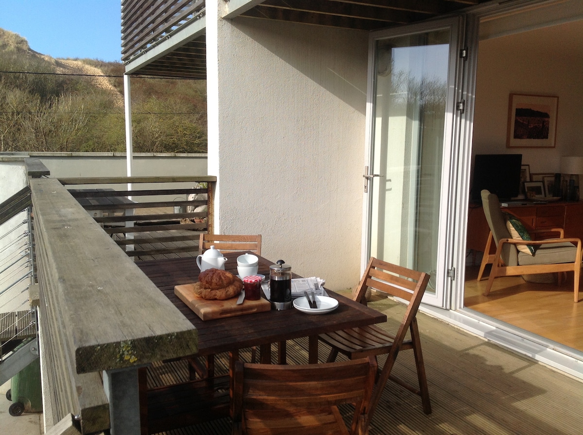 This luxurious two bedroom cottage is right beside the sandy beach. There is a spacious open-plan lounge (inc wood-burner) and dining area. The two double bedrooms have built-in wardrobes on the ground floor and stairs to a mezzanine suitable for children with a tv and bean bags. The kitchen is fully equipped including a washer, drier, fridge freezer and all crockery and cutlery. The ground floor bathroom has bath (with shower), sink & WC. Outside is a large family garden, table & chairs.