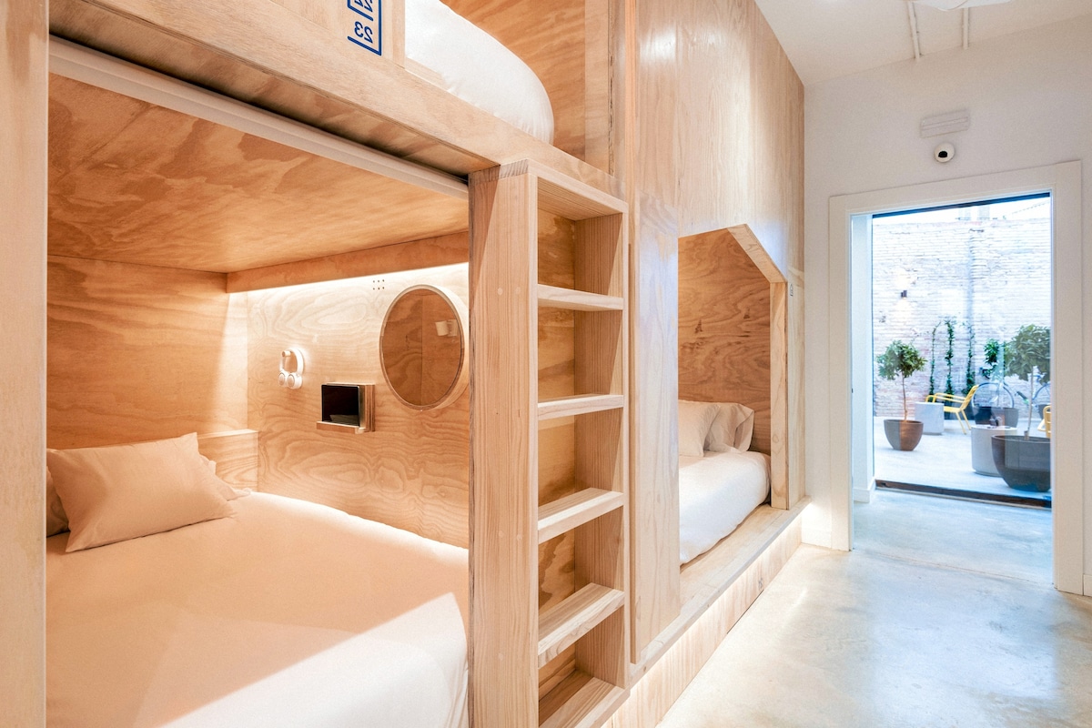 Welcome to Beach & Arts Hostel, a cozy hostel designed for travelers looking for comfort and a friendly atmosphere. Our prime location on Calle Ibiza puts you close to the City of Arts and Sciences, beaches, and a vibrant nightlife. The hostel is accessed through the park. Bed in a shared 8-bed dormitory. The bedroom features air conditioning and a shared bathroom with shower. I have a camera that records the common area.