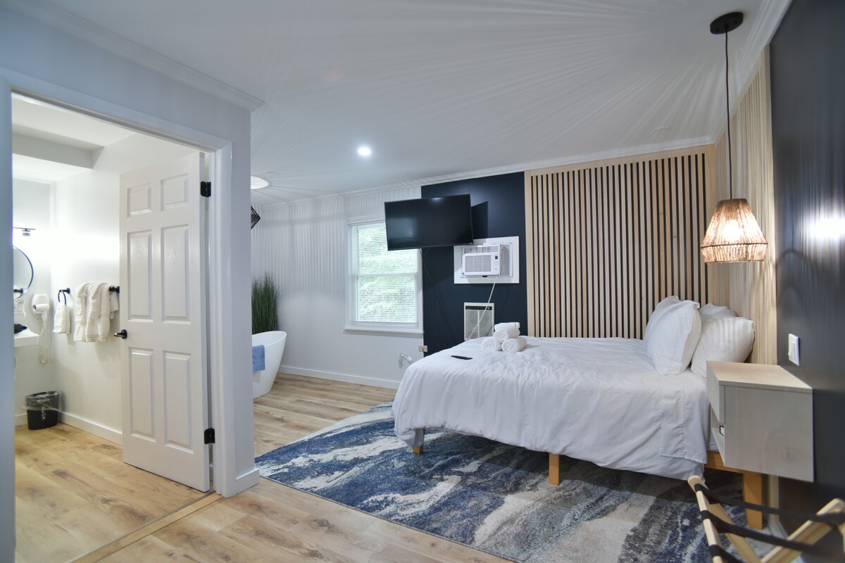 Make yourself at home in our Queen Room with Kitchenette, thoughtfully designed for extended stays and added convenience.This inviting space features a comfortable queen-sized bed and a well-equipped kitchenette complete with a microwave, mini-fridge, and coffee maker — perfect for preparing meals or snacks anytime. Stay cool with efficient air conditioning, stay connected with complimentary high-speed WiFi, and unwind in a cozy setting that captures the relaxed, lakeside vibe of Keuka Cove Inn.