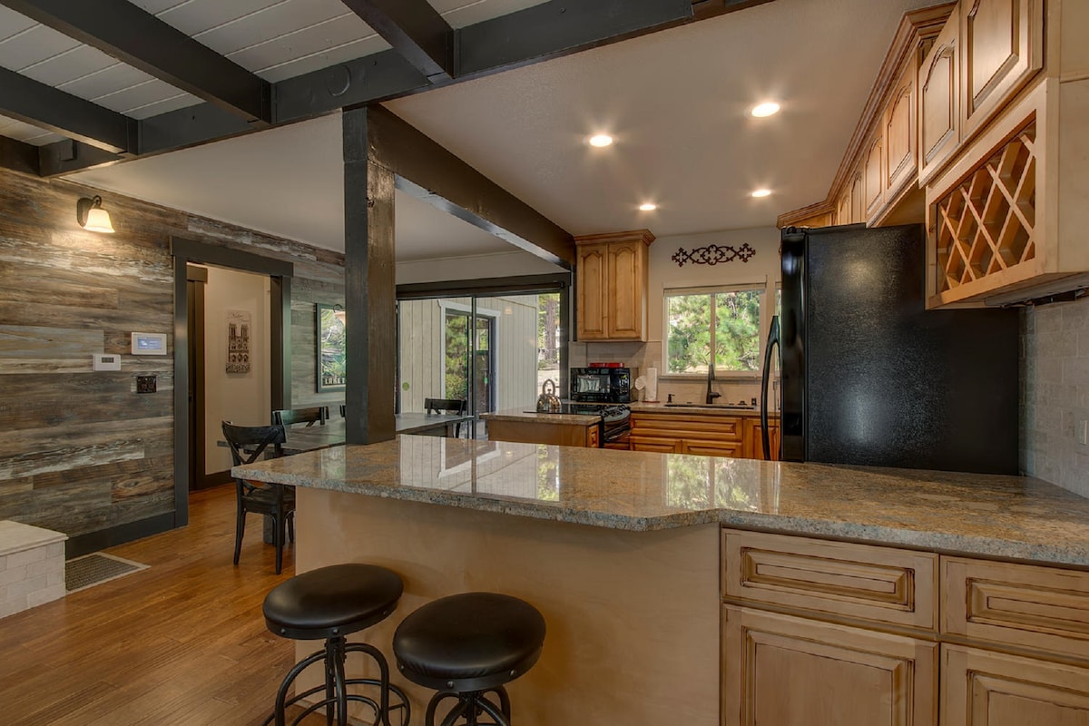Relax at “The Treehouse”, a recently and beautifully remodeled Tahoe Vista retreat, and enjoy the Tahoe pines, mountain air, and filtered lake views. Inside you'll find a high-end kitchen, bathrooms, appliances and furnishings, without forgetting you're in the mountains. Relax in the hot tub after a day of Tahoe adventures and gaze up at the stars. The house is minutes from Lake Tahoe and Northstar California Resort.