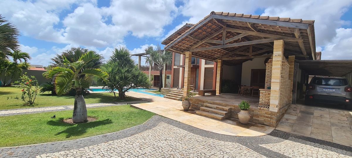 Great place to rest and relax. Cozy, duplex house, with 200m² of built area, 900 meters of total area, ample outdoor space, swimming pool, deck with barbecue, gardens, lawn and balconies. It is less than a block from the beach, centrally located, close to Donana, Jangadeiro, Pousada do Sol Hotels and “Mangue Seco” market. It has 4 bedrooms, 3 of which are en-suites. Note: it has Wi-Fi! *It is 50 minutes from Pinto Martins airport and 60 minutes from Aldeota.